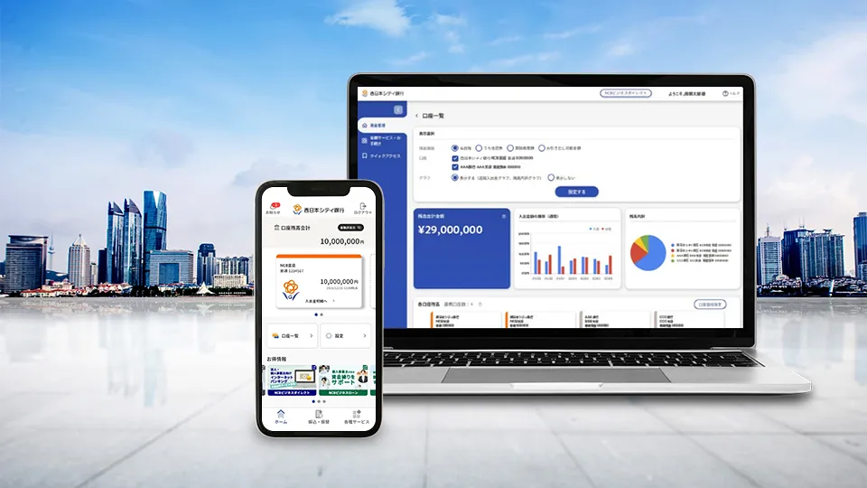 NCBビジネスステーションに追加で口座をご登録いただくことで、登録口座ごとの「預金残高」や「入出金明細」の確認ができます。