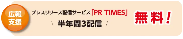 | 内容 | プレスリリース配信サービス「PR TIMES」をプラン開始希望日から半年間、3配信まで無料でご利用いただけます。 ただし、4配信目以降、または特別プラン開始日から半年経過後は、所定のご利用料金が必要です。 |