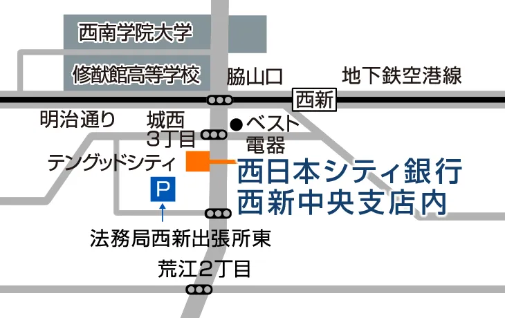 | 住所 | 福岡市早良区祖原1-1 テングッドシティ内 西新中央支店1階 |