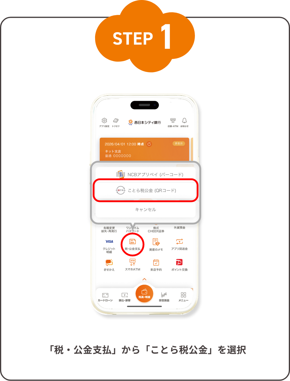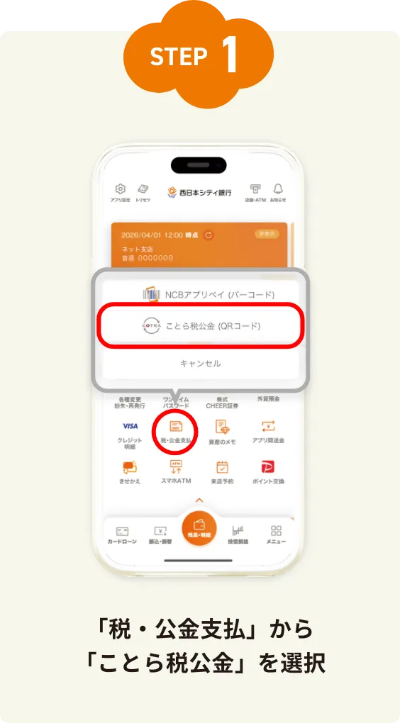 西日本シティ銀行アプリの「税・公金支払」アイコンから「eLマーク」表示がある納付書の「二次元コード」を読み取るだけで、税公金納付ができるサービスです。